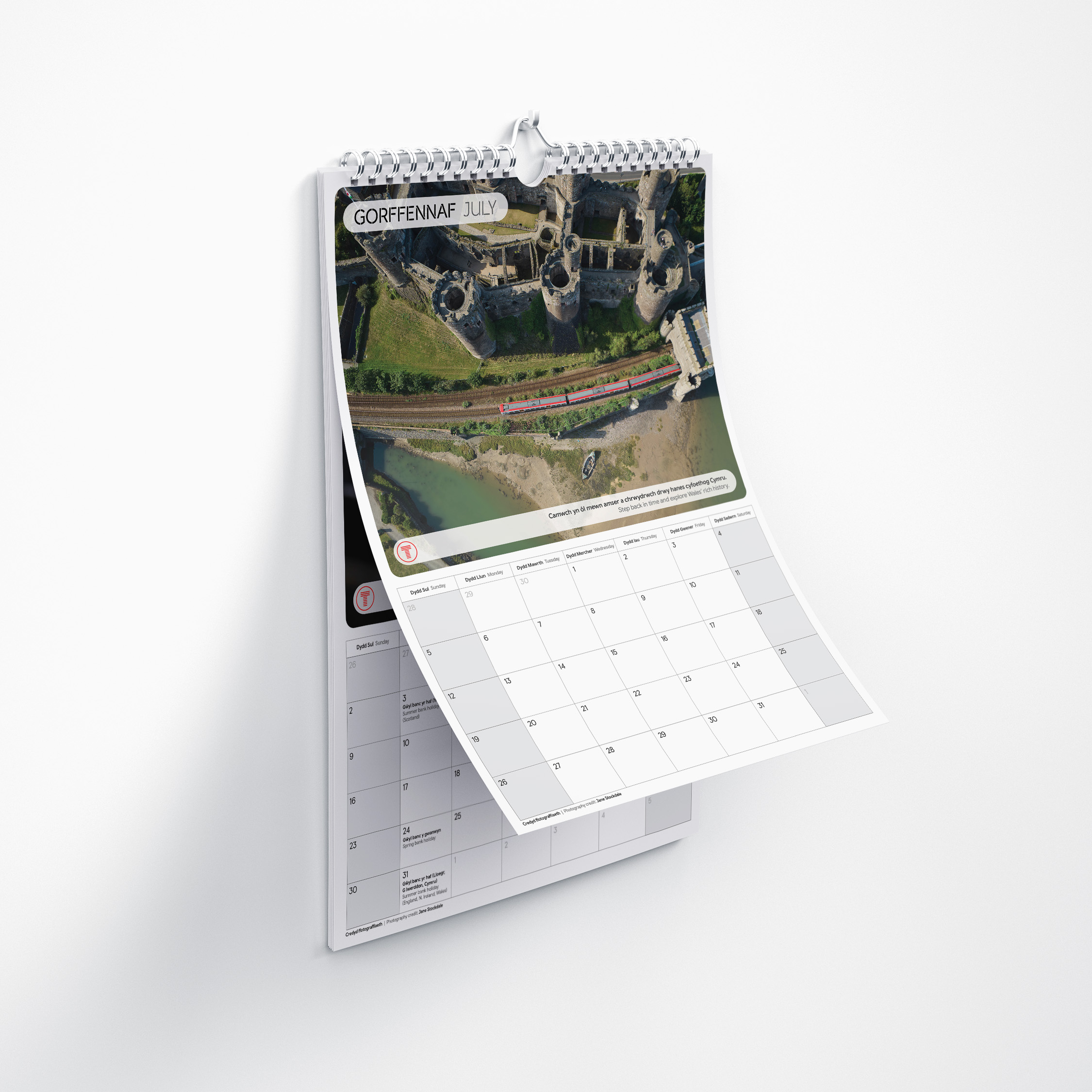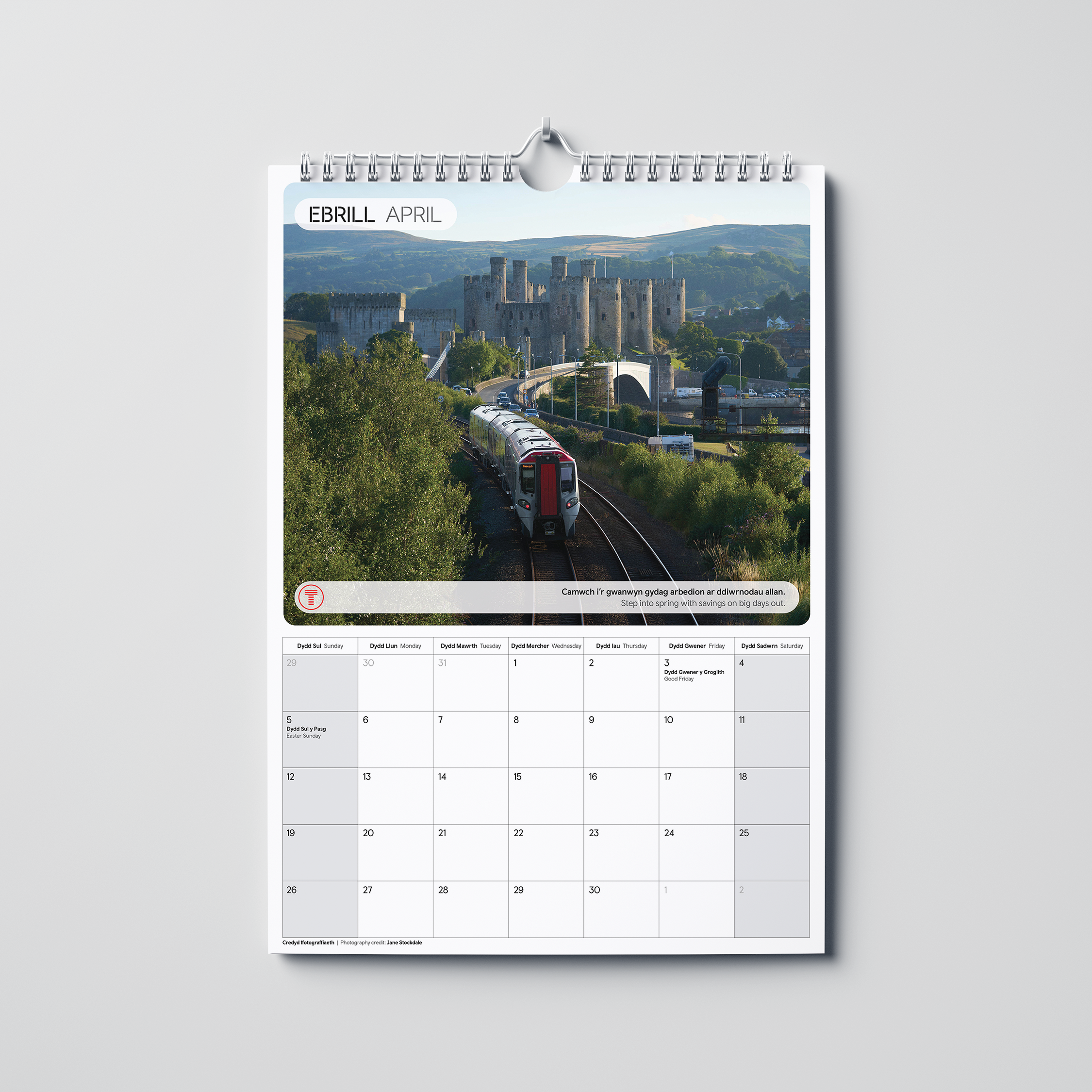 Cynlluniwch eich blwyddyn gyda chymorth Calendr swyddogol Trafnidiaeth Cymru 2026. Mae'n ychwanegiad perffaith i unrhyw gartref neu swyddfa, bob mis yn eich cludo ar daith hyfryd o amgylch ein rhwydwaith gyda lluniau hudolus gan Jane Stockdale gan gynnig ysbrydoliaeth ac awgrymiadau o ran teithiau. Mae ein calendr yn anrheg gwych i bobl sy'n hoff o Gymru a'r gororau, teithio neu'r ddau! Ar ben hynny, mae hefyd yn anrheg y gallwch fod yn falch ohono. Caiff pob £2 o bris pob calendr ei roi i'n helusen ddewisol Seren Dwt, elusen sy'n cefnogi plant a theuluoedd ledled Cymru.